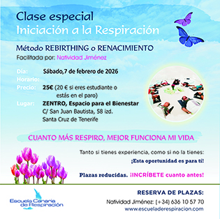 Todo un descubrimiento sobre el poder de la respiración. Tomar consciencia de los diferentes estados emocionales a través de la respiración es algo que, sinceramente, me ha supuesto un gran descubrimiento. Gracias Natividad.