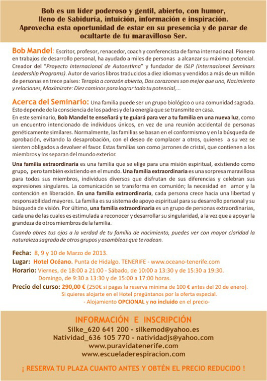 Bob Mandel est un chef puissant et doux, Ouvert, avec humour, plein de sagesse, intuition, information et inspiration. Saisit cette occasion d'être en sa présence et d'arrêt masquer vous de votre merveilleux.